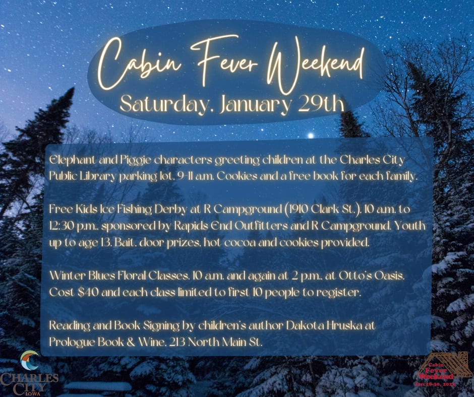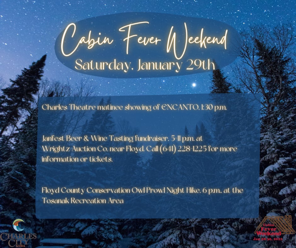 Get out and enjoy a variety of indoor and outdoor activities in and around Charles City during Cabin Fever Weekend January 28-30, 2022. Check out our area attractions and shop and dine local while enjoying the weekend festivities! Contact the host entity or the Chamber of Commerce at events@charlescitychamber.com for more information.Images