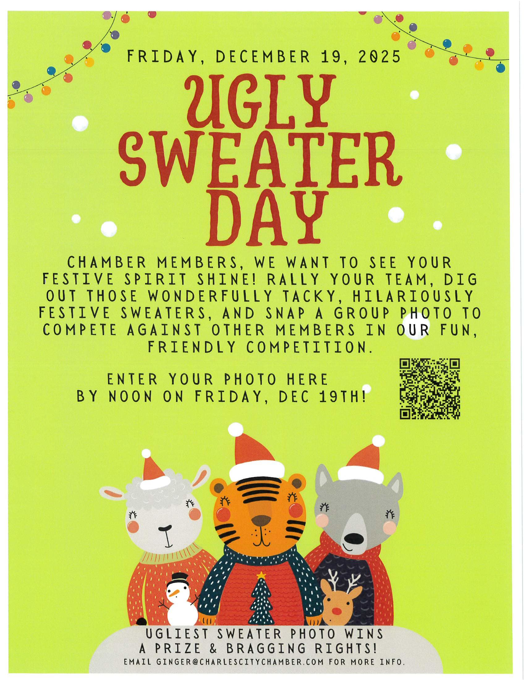 Chamber Members snap a picture of your group and enter by noon Friday December 19th. See image for QR code to enter photoImages
