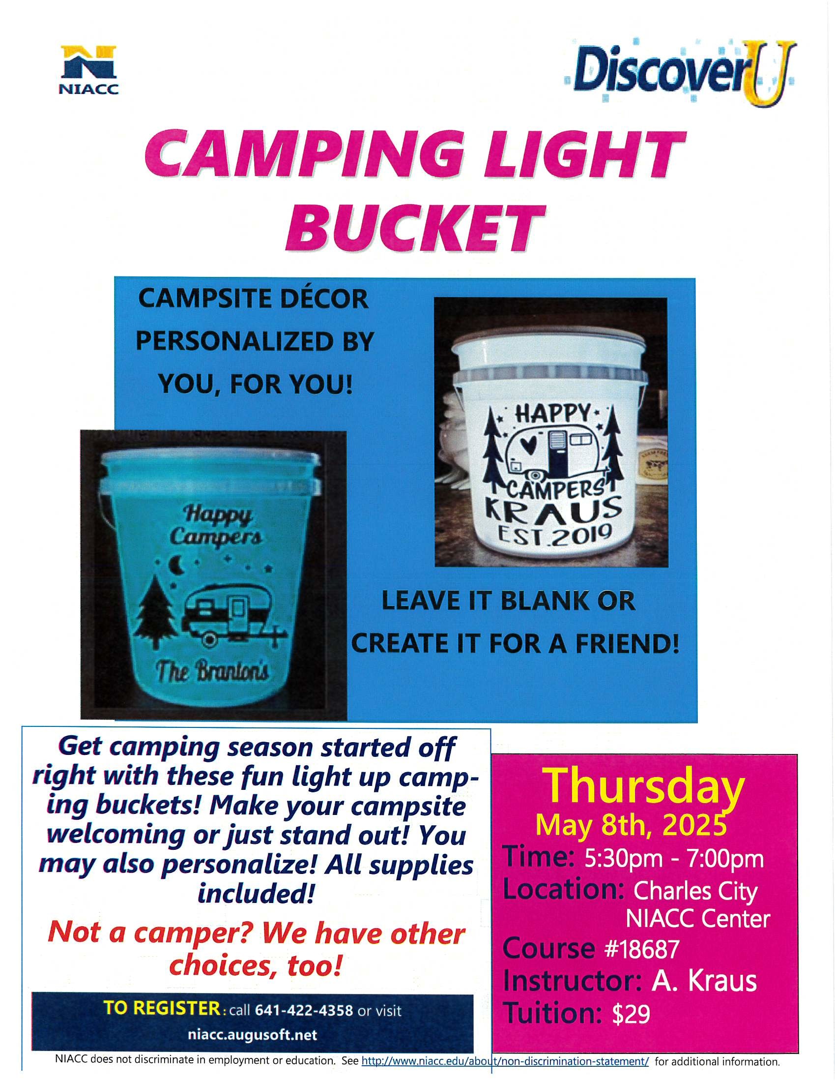 All supplies included. Not a camper? Other choices available. Tuition $29 Course #18687Images